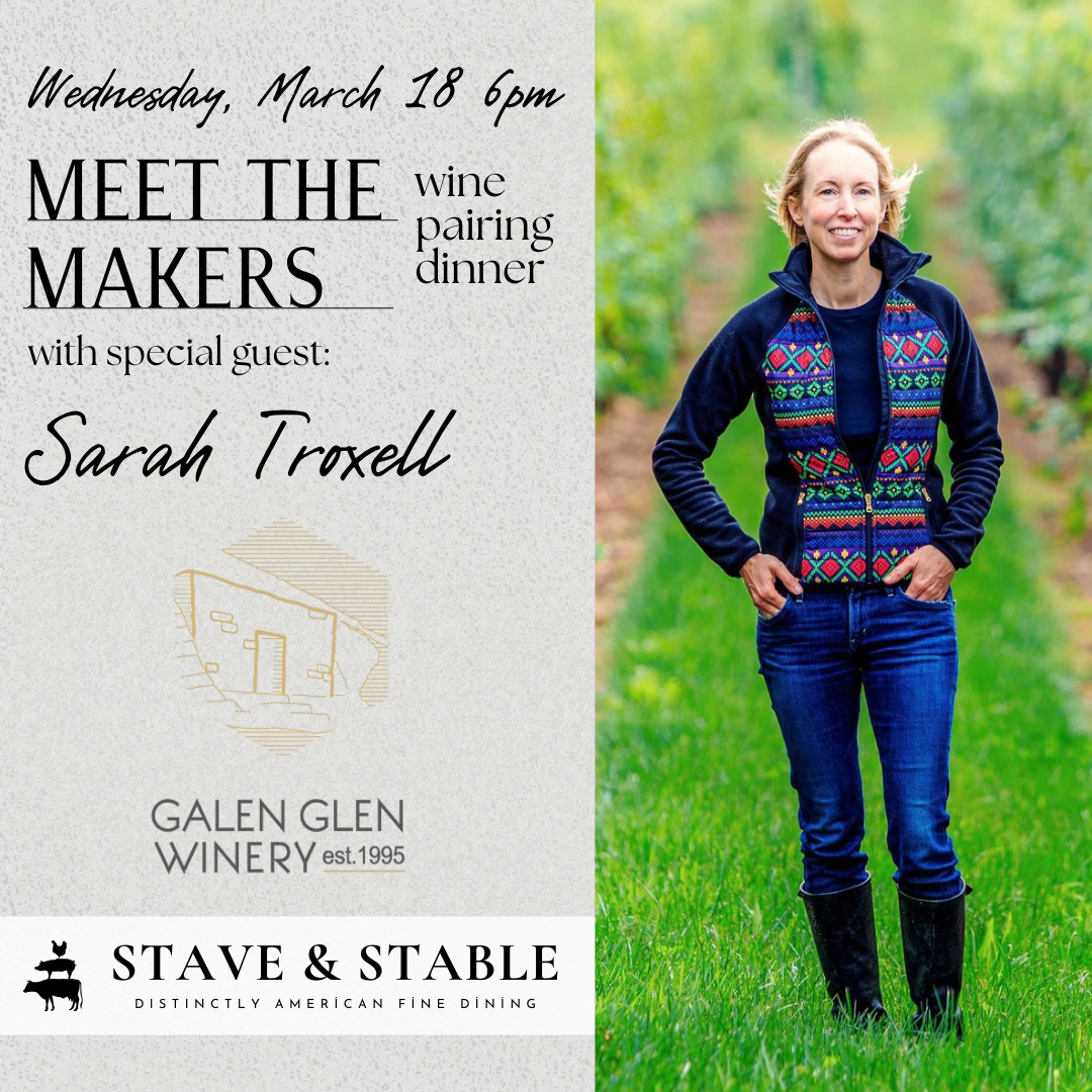 “Meet the Maker’s” Wine Dinner series returns with special guests from Galen Glen Winery (Andreas, PA). $100/pp