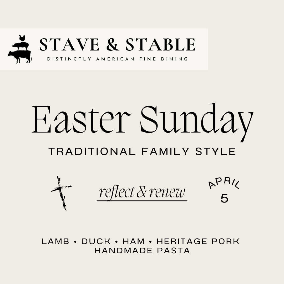 Our annual tradition: Family-Style Traditional Easter Sunday Dinner. Duck, lamb, heritage pork, ham and handmade pastas, with all the trimmings. Just $49/pp. Children under 12, $22/pp. (For those who prefer, our full menu will also be available.)
